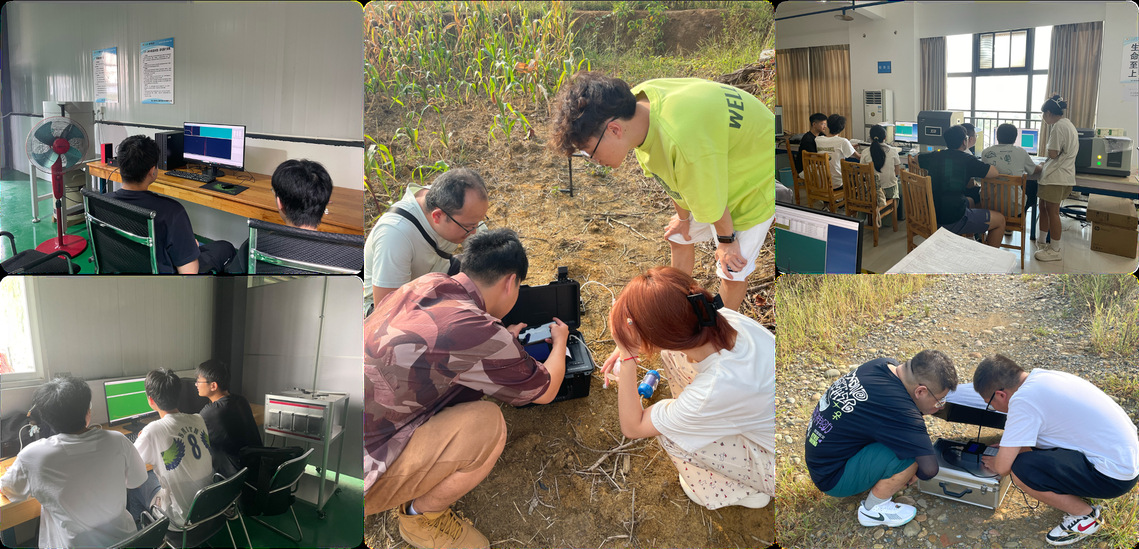 此次实习旨在让学生将课堂上学习的理论知识与实际操作相结合,深入了解专业技术在生产生活中的实际应用。公司为学生制定了合理的实习计划,提供了多种实验设备和实验平台,并逐个配备了指导工程师,指导同学们开展了RoHS 检测与能量分辨率的测定、β 射线在物质中的吸收、HPGe 能谱测量,自然环境伽马能谱测量等一系列核辐射测量实验。实习期间,同学们走进实验室,分析被测样品的谱线,理解X荧光的元素分析本领;计算穿透薄片后的粒子数,回想不同粒子的穿透能力;走进田间地头,探寻氡气和铀钍钾,随着仪器数据地跳动,似乎真切感受到了天然放射性粒子的存在。